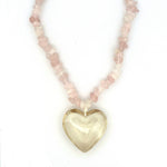 Indulge in the delicate beauty of our Collar Reina. Made with genuine Rose Quartz chips and finished with a crystal heart, this handcrafted necklace features an adjustable length of 16”. The light pink thread adds a subtle touch of elegance. Not just a piece of jewelry, but a work of art.