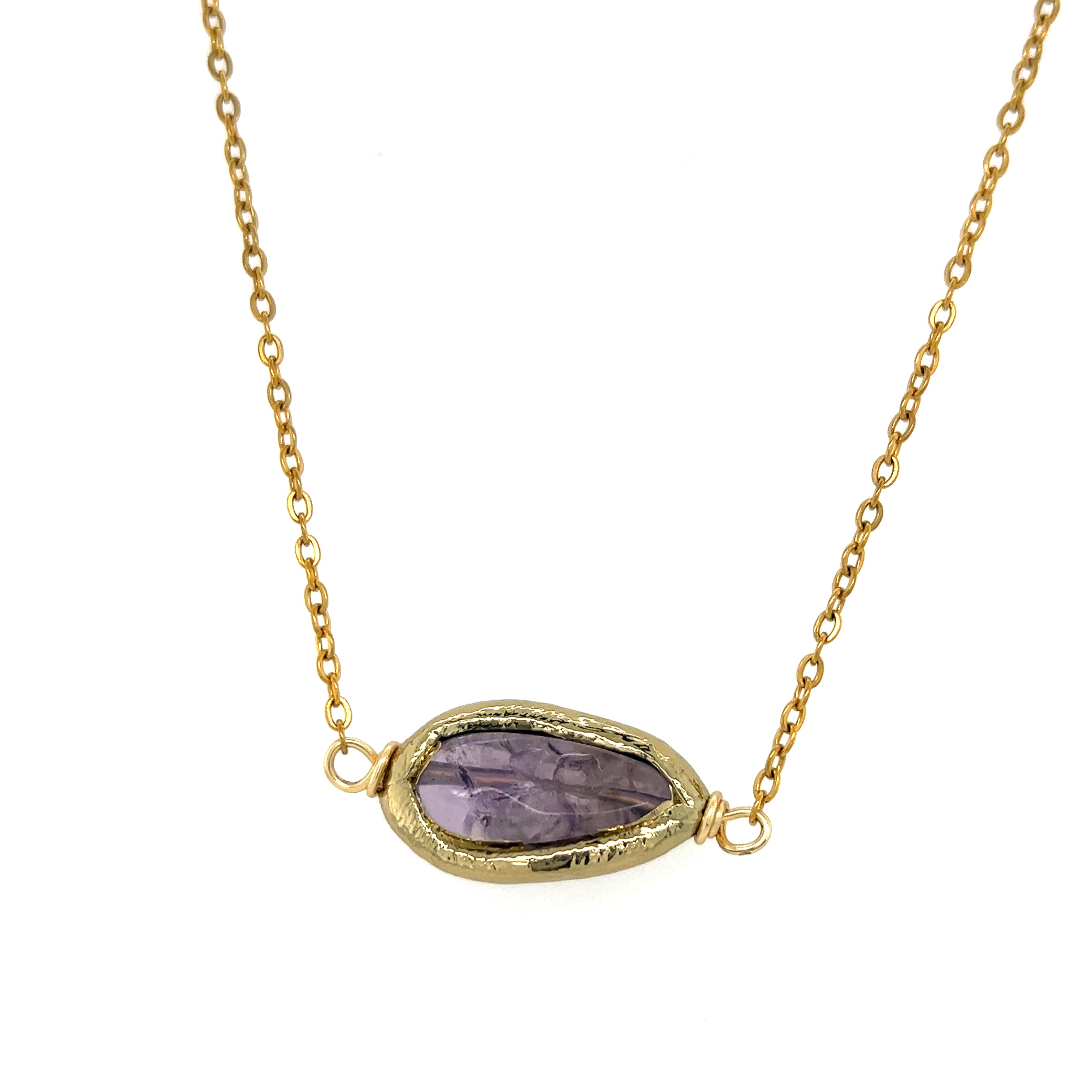 Hermosa cadena con una piedra ágata con un borde dorado de baño de oro 18k. Extiende de 16” a 18”. Perfecta para añadir a tu layering.