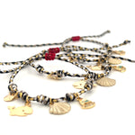 Elevate your summer style with the La Posita Bracelet. This handmade piece features a black and gold knotted cord adorned with summer-inspired charms, accented by a bold red macrame closure. A perfect addition to your arm candy, this bracelet is a must-have for any summer essential collection.
