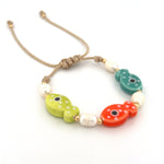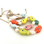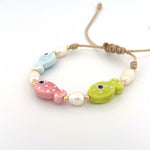 Introducing the Sofi Bracelet, the perfect summer accessory for the sophisticated and exclusive! Made with colorful ceramic fishes and fresh water pearls, each piece is uniquely handmade and features an adjustable neutral thread. Elevate your style with this luxury must-have.