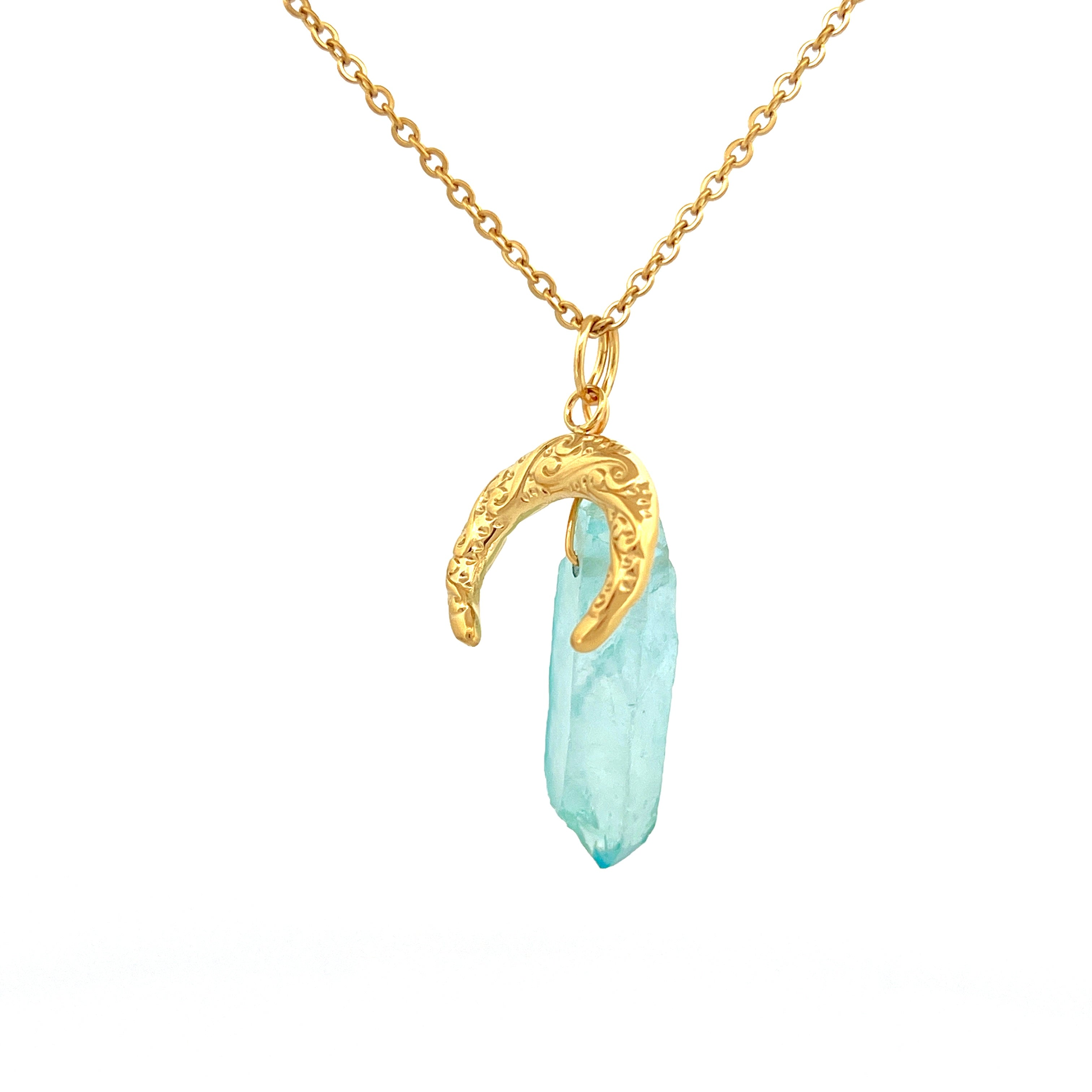 Aqua Lunar - Cadena en Cuarzo Cristalino Turquesa con Charm de Luna Texturizado
