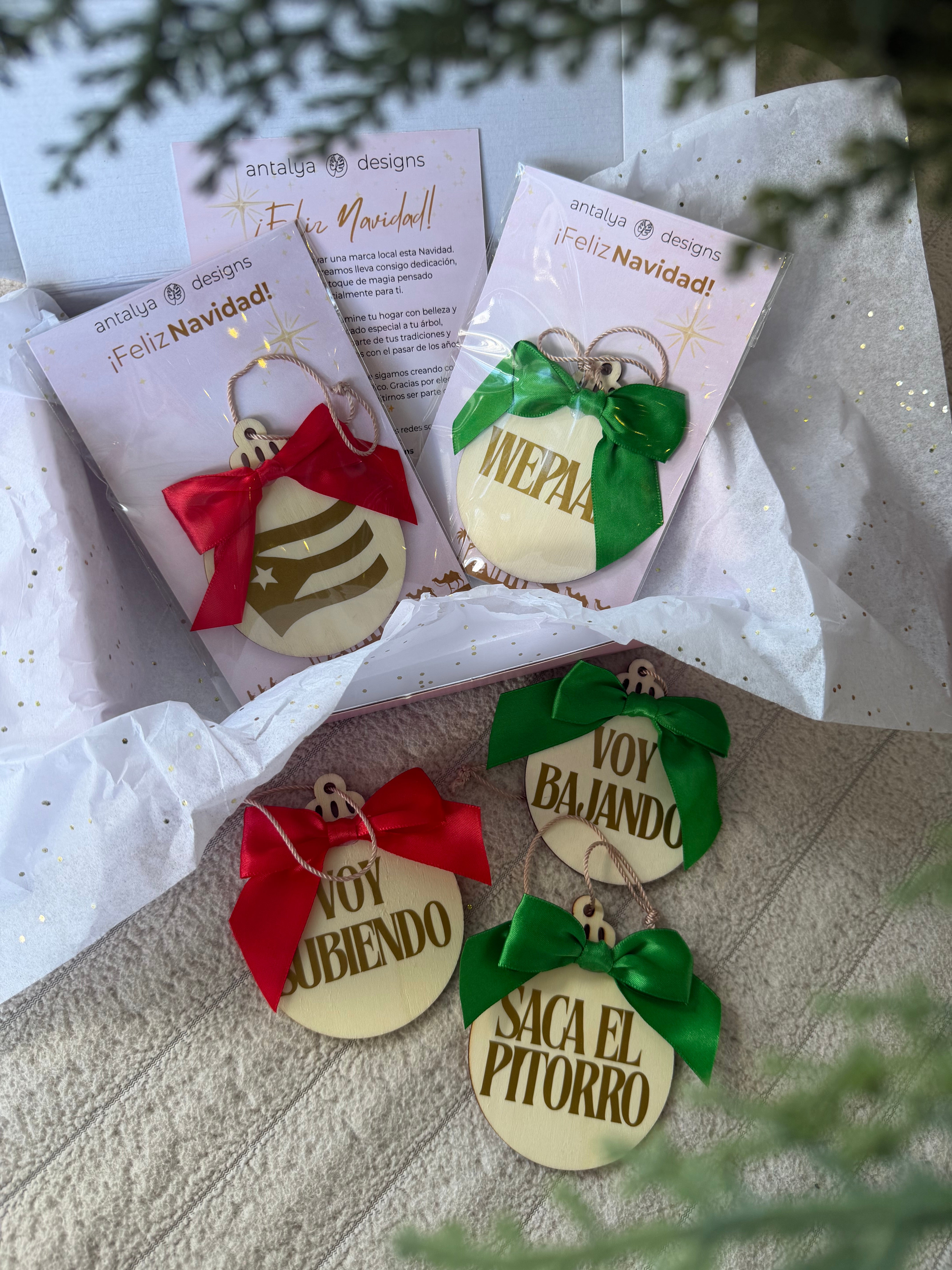 Lleva el espíritu de Puerto Rico directo a tu arbolito con nuestros adornos personalizados, inspirados en frases que solo un verdadero boricua entiende.
