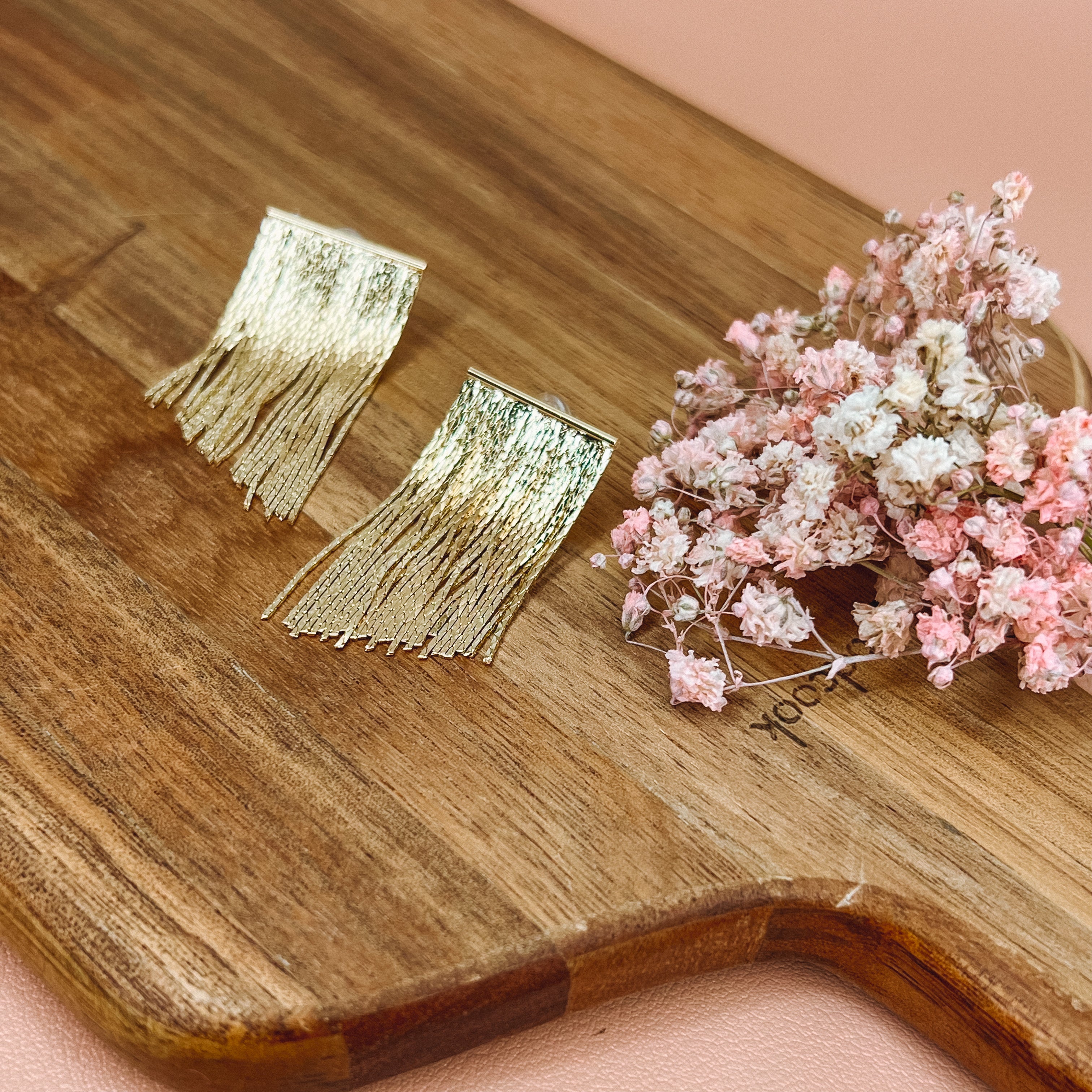 These exclusive Cleopatra Earrings will elevate your look for any special occasion. Crafted with 18k gold plating, the long, sophisticated chains hang gracefully from the ears with a luxurious shimmer. As perfect for a night out as they are for adding a stylish touch to formal attire, these earrings will give you an unforgettable shine.
