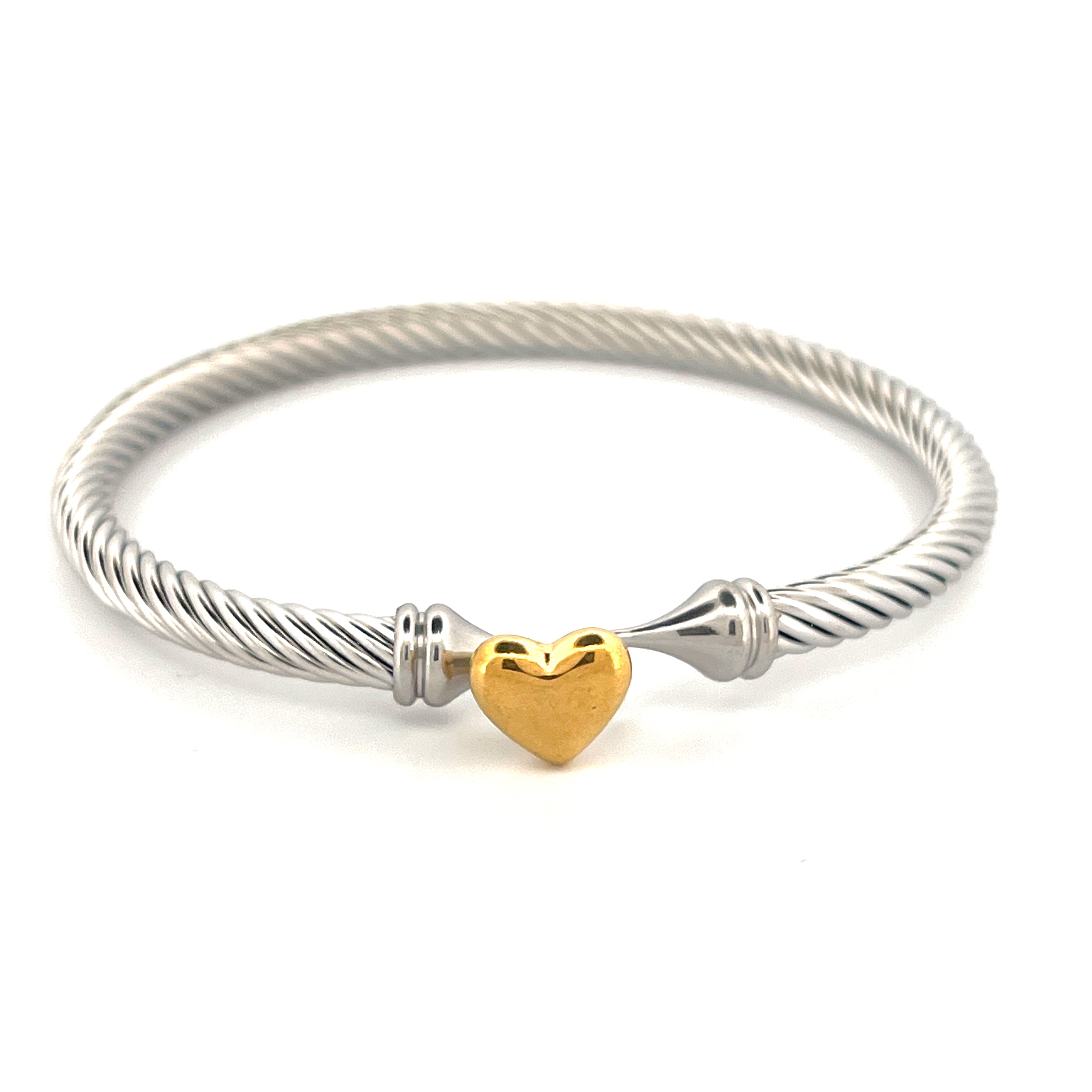 Channel sophistication and elegance with our Mr. D Heart Bracelet. This double tone cuff bracelet features a beautifully braided body adorned with a golden heart, adding a touch of luxury to any outfit. Adjustable for the perfect fit.