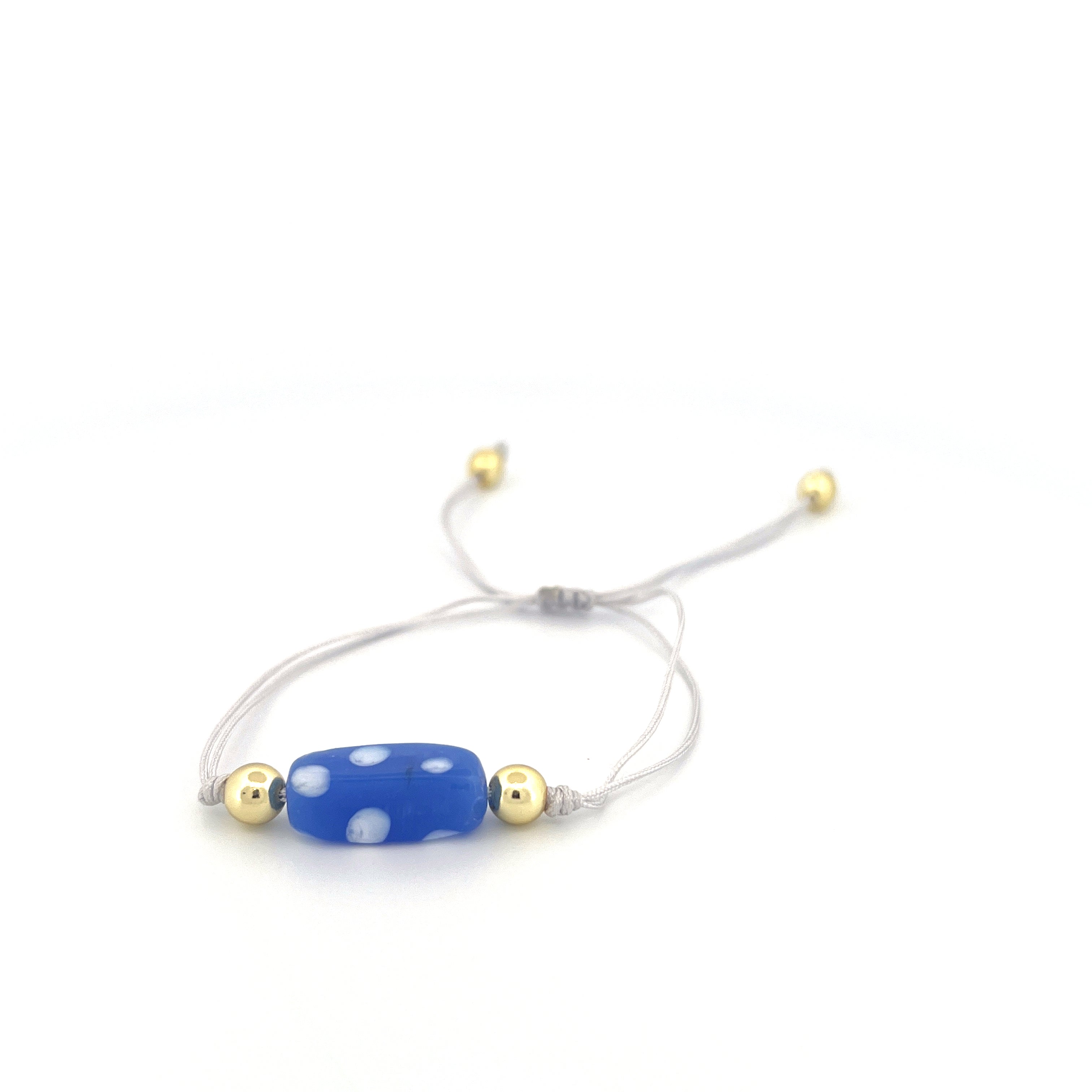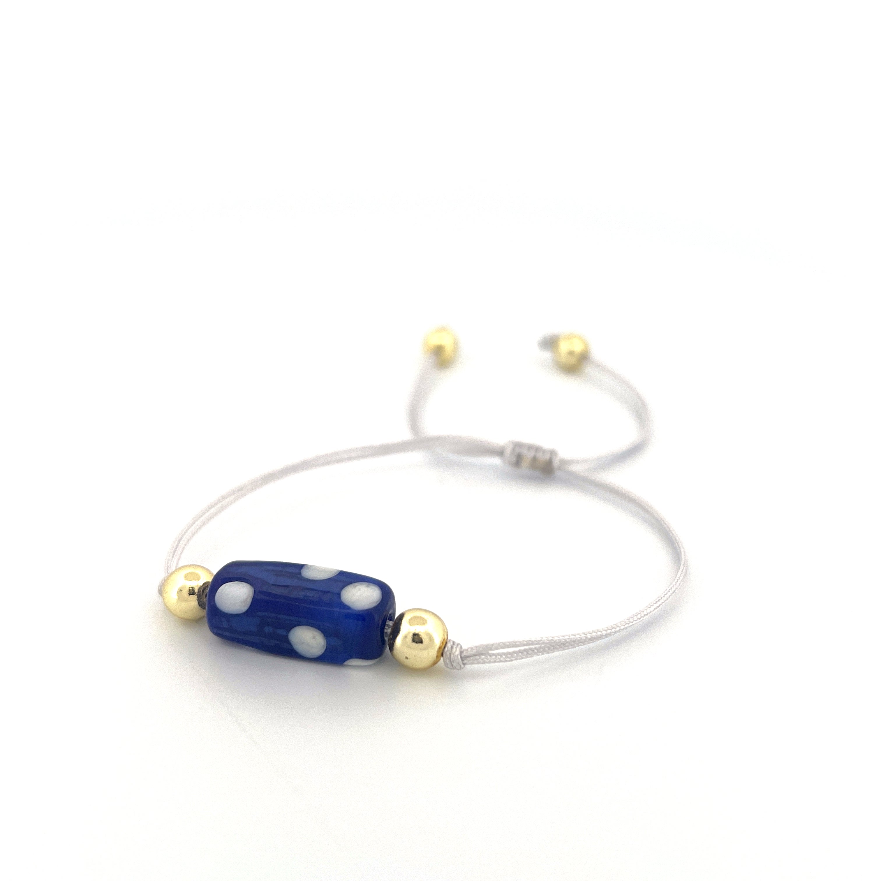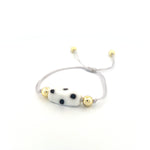 Elevate your style with the Laly Bracelet. Handmade with intricate dotted details and a stunning glass centerpiece, this adjustable bracelet exudes luxury. Its 18k gold plated accents add a touch of sophistication to any outfit. Elevate your look and make a statement with this exclusive piece.