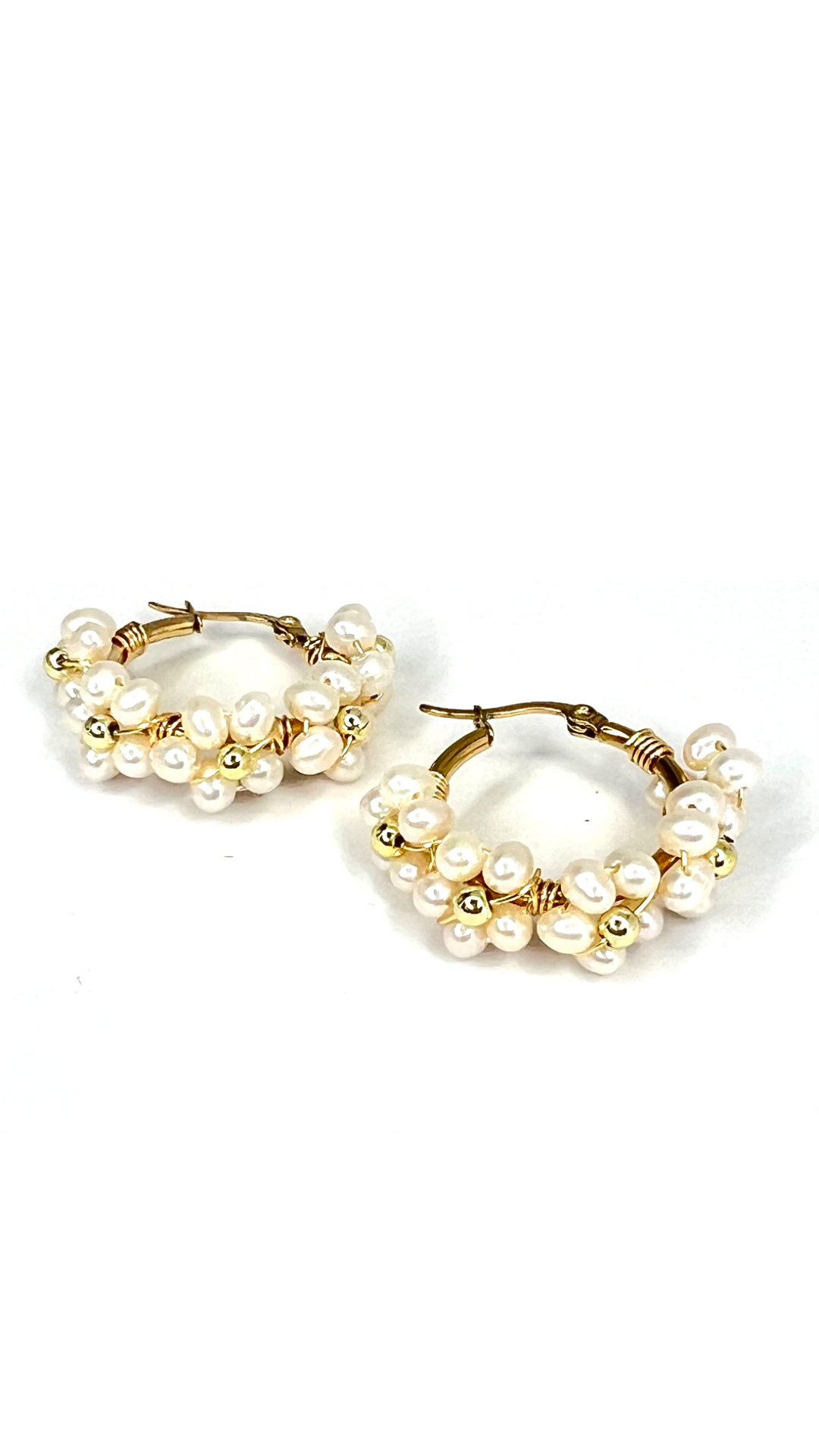 Argollas Alambradas a Mano en Forma de Flor con Perlas de Agua Dulce - Florencia Hoop Earrings