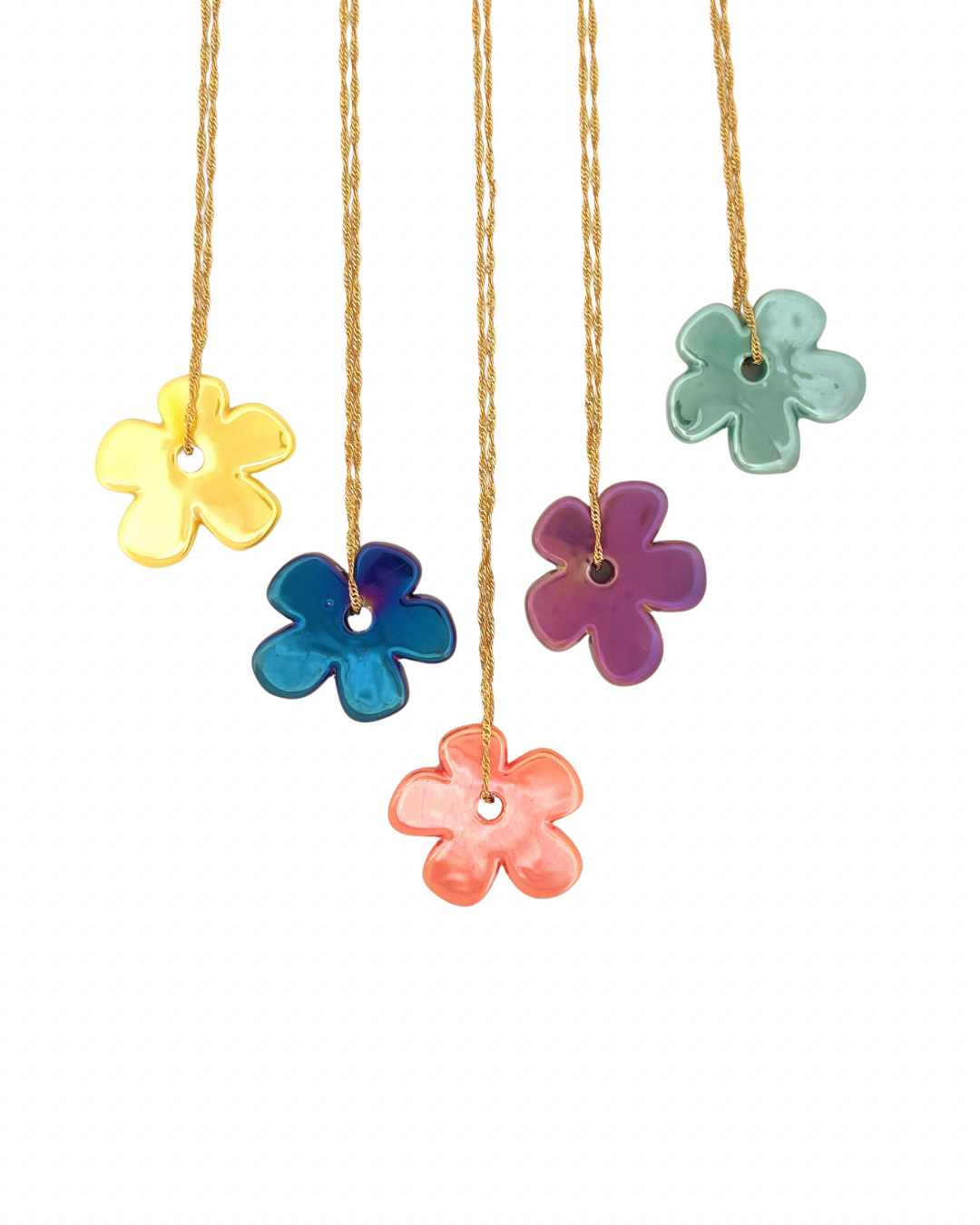 Embrace the beauty of nature with our Colorful Flowers Chain. Each ceramic flower is delicately handcrafted, adorning the 18k gold plated chain. Versatile in length, this statement piece is perfect for any spring jewelry collection. Add a touch of sophistication to any outfit.