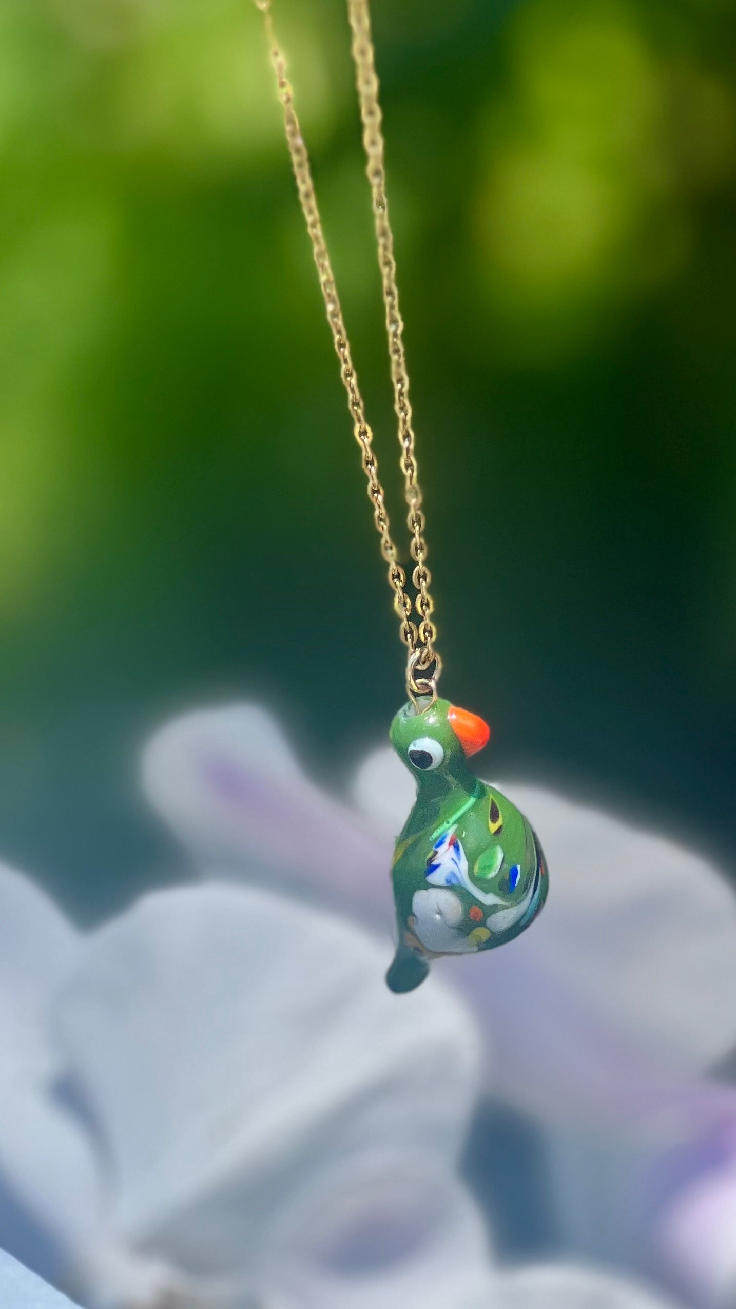Elevate your style with our Cotorrita Chain. Handmade and hand wired, this ceramic parrot pendant exudes luxury and charm. The 18k gold plated chain adds an elegant touch, offering versatility with its extendable length from 16 to 18 inches. A true masterpiece for your wardrobe.