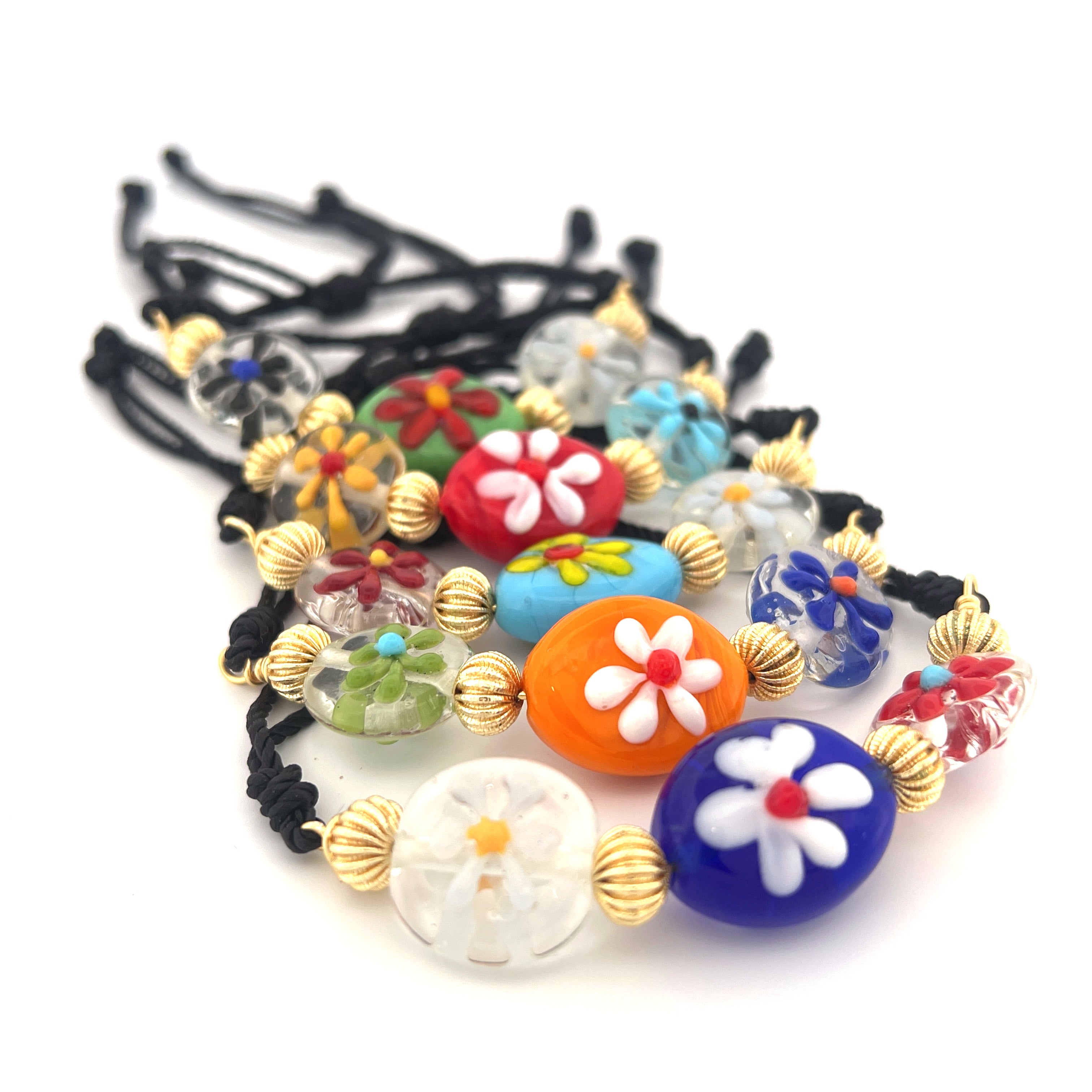 Elevate your style with our Florencia Bracelets. Adorned with hand-wired, vibrant Murano glass and exquisite 18k gold plated details, each bracelet is a work of art. The macrame closure ensures a perfect fit, making it a luxurious addition to any outfit. Experience the beauty of exclusive craftsmanship with our bright and bold Florencia Bracelets.