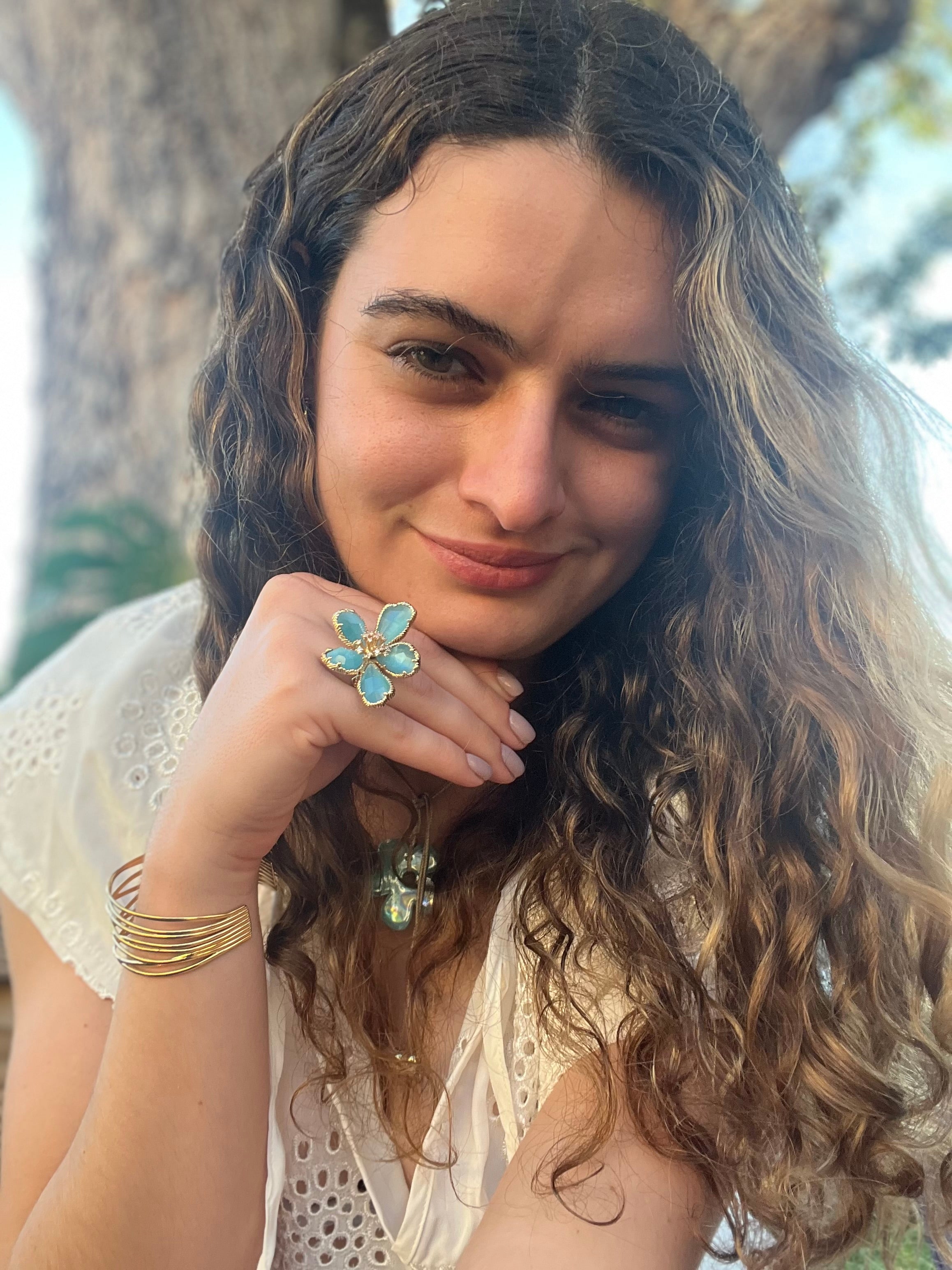 Indulge in luxury with our Orquídea Ring. The adjustable orchid shape is adorned with natural semi precious beads, while the center radiates light with shimmering rhinestones. Finished in 18k gold, this ring is a statement piece for any occasion.