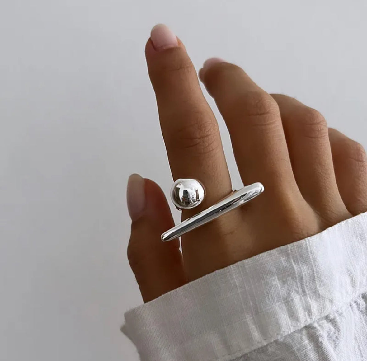 Sortija Ajustable Plateada con Línea y Esfera - Satelite Ring