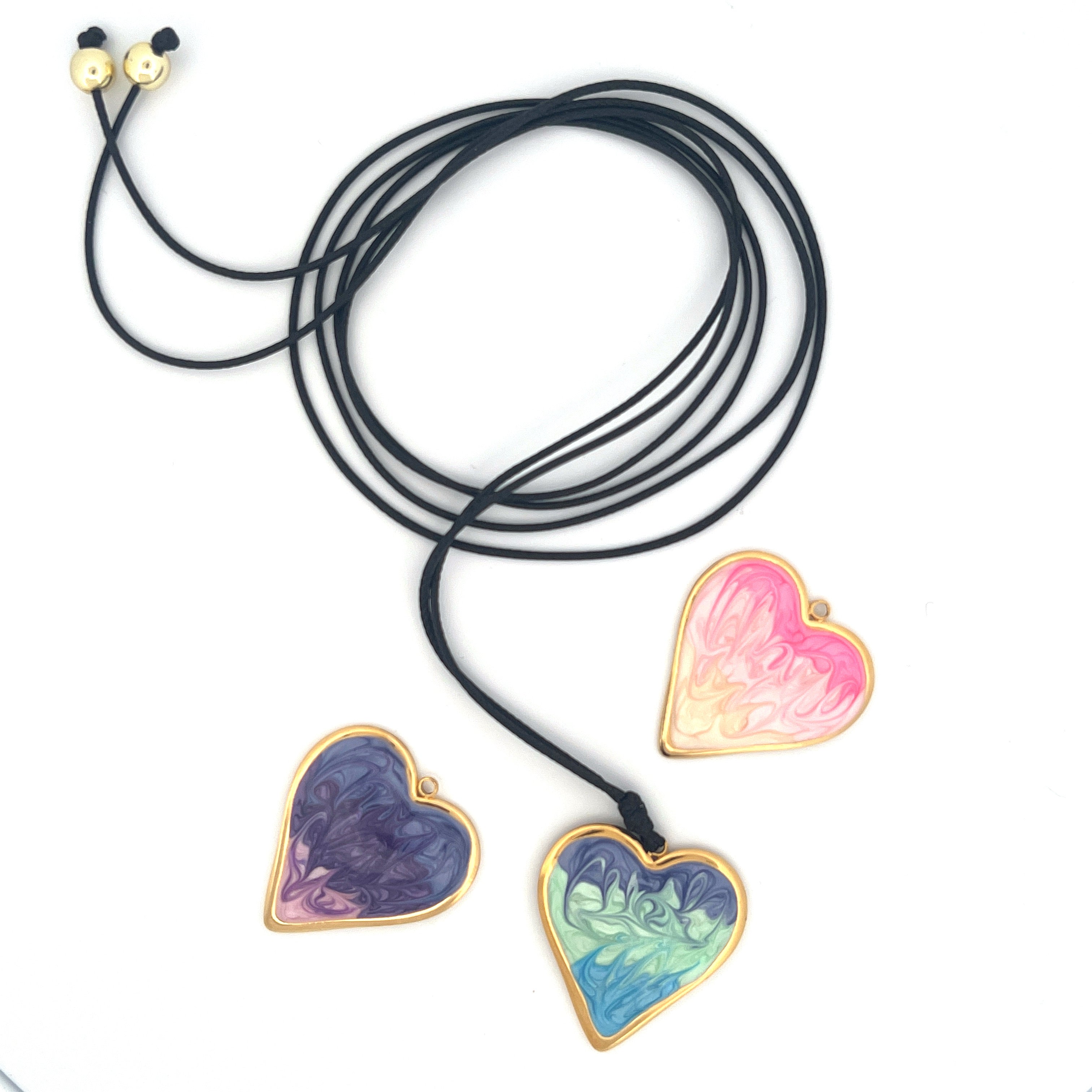 Add a touch of versatility and sophistication to your jewelry collection with Amor de Colores - Collar Multiusos. This stunning necklace not only offers multiple ways of wearing it, but also boasts black thread and gold plated details, adorned with a heart in your choice of three beautiful colors. Elevate your style with this exclusive and luxurious piece.