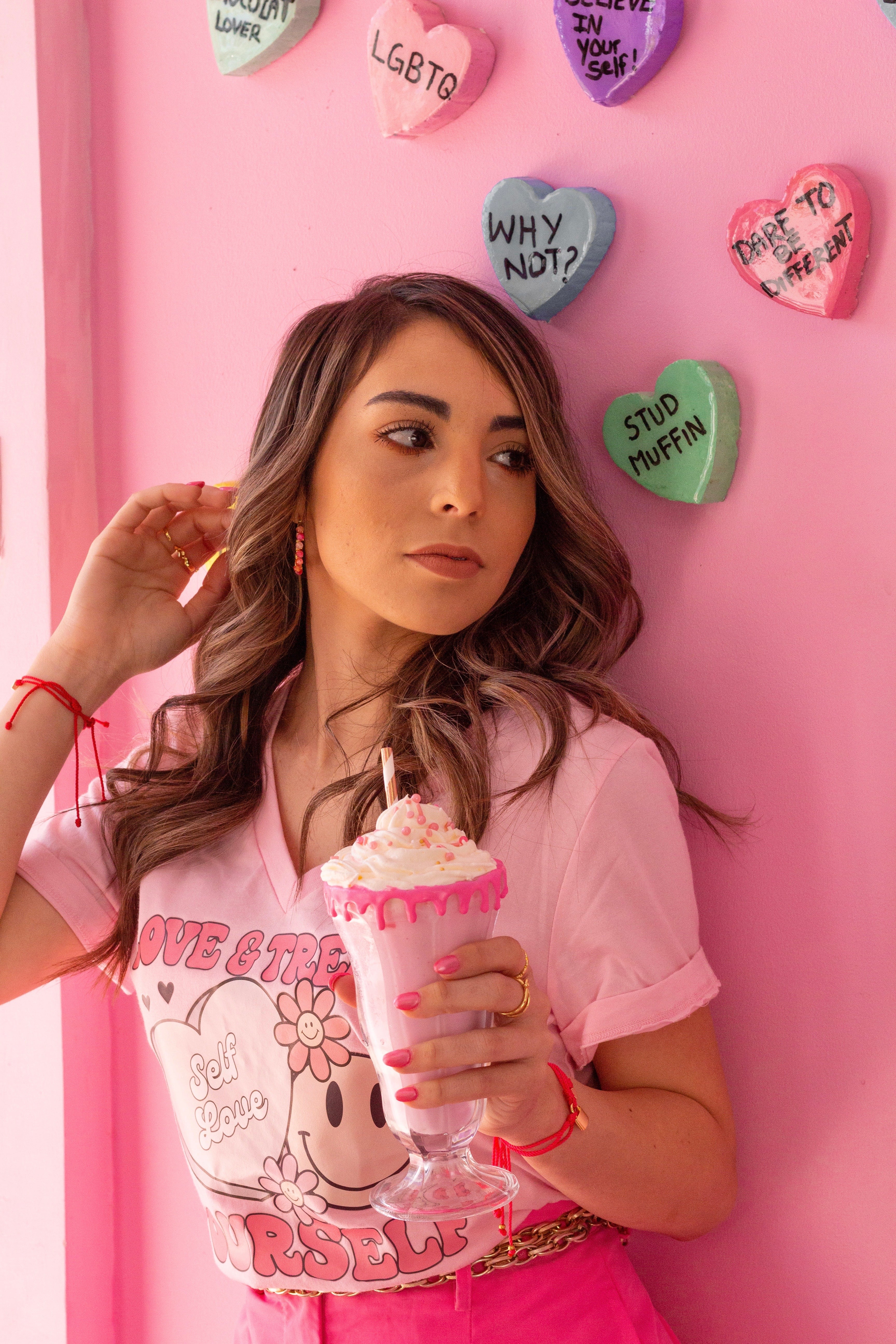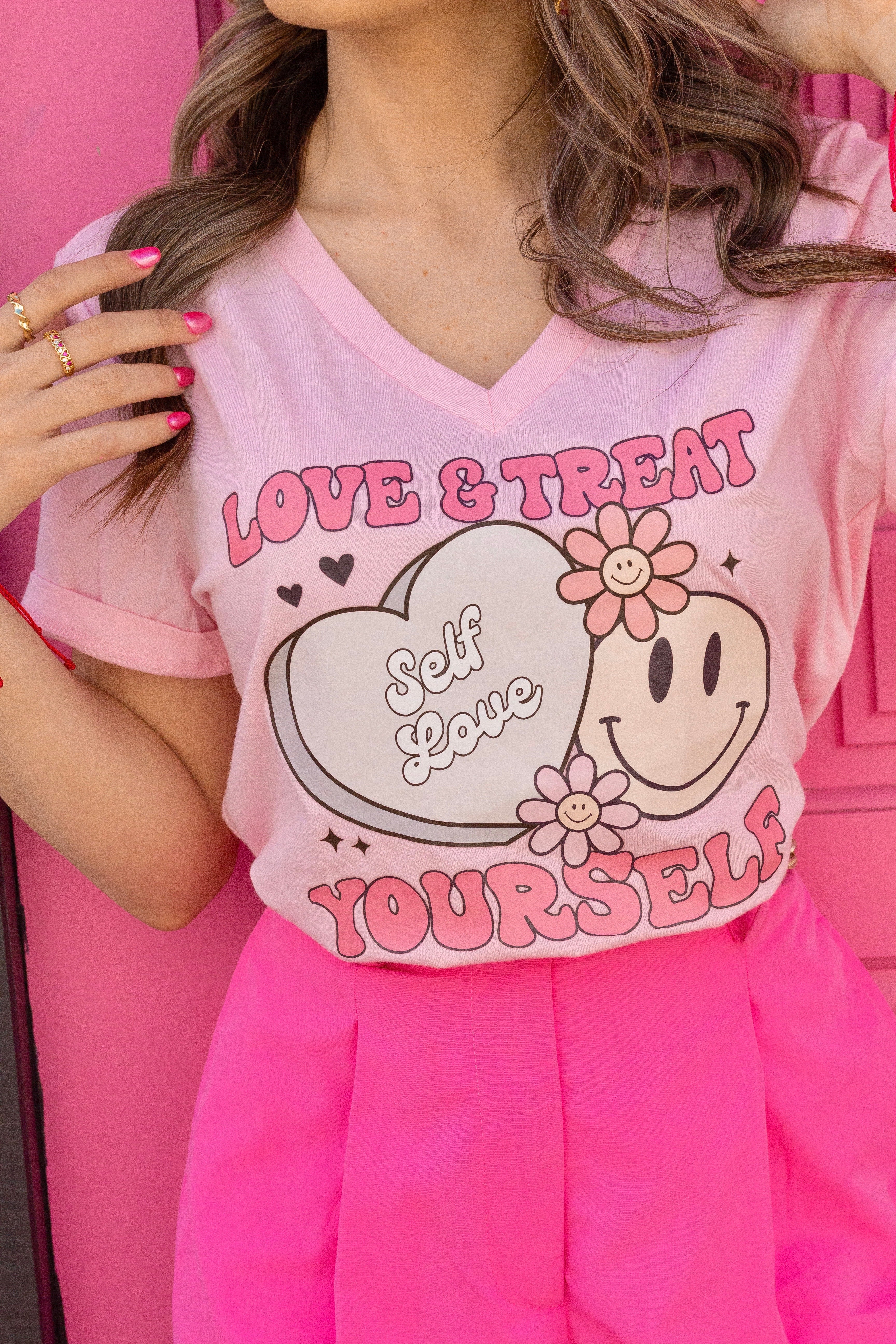 Transform your Valentine's Day with our new Self Love Tee - the perfect addition to your wardrobe. Made with 100% cotton, this tee is both comfortable and stylish, suitable for all your moods. Wear it with skirts, dress pants, jeans, or shorts for a versatile look. Plus, its true to size fit and unique vinyl art make it a must-have for the tropics. For best care, wash by hand for lasting wear.
