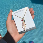 Hecha a mano en Puerto Rico, Cadena en stainless steel con baño en oro 18k. Caracol y piedras naturales.