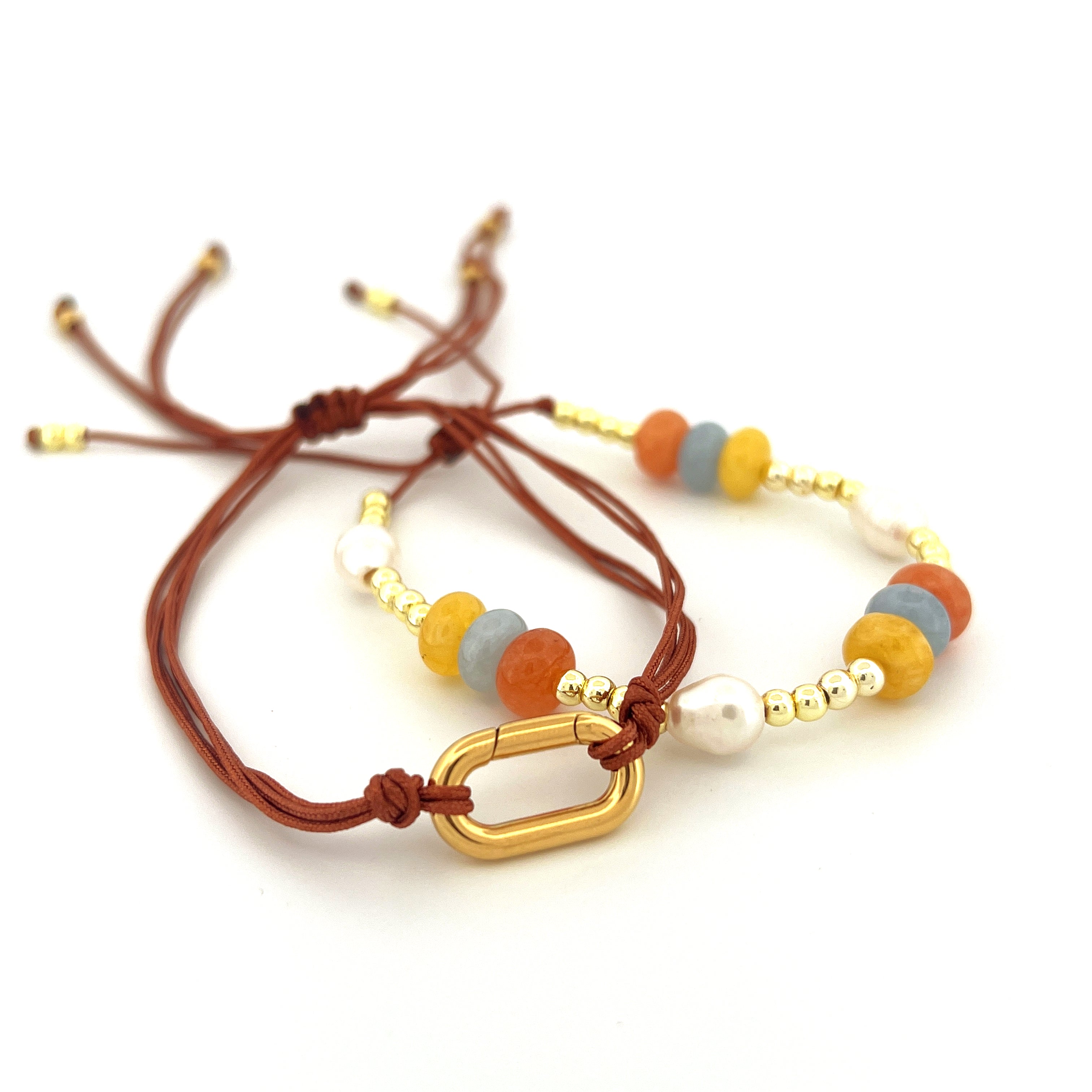 Experience artistry and elegance with the Fabiana Bracelet. Handmade with a delicate nude band and 18k gold plated details, this bracelet exudes luxury. Its adjustable design ensures a perfect fit, and the signature charm adds a touch of exclusivity. Elevate your style with this sophisticated accessory.