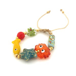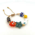 Elevate your summer style with the Vale Vale Bracelet. Its colorful lampwork beads, handcrafted macrame design, and seaside-inspired charms (starfish, fish, and crab) make it a must-have for any beach lover. Plus, the adjustable fit ensures it will be a perfect addition to any outfit.